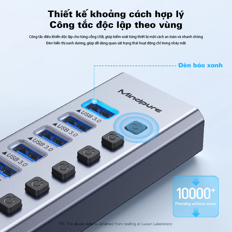 Ưu điểm nổi bật bộ chia USB3.0 7 cổng Mindpure US029