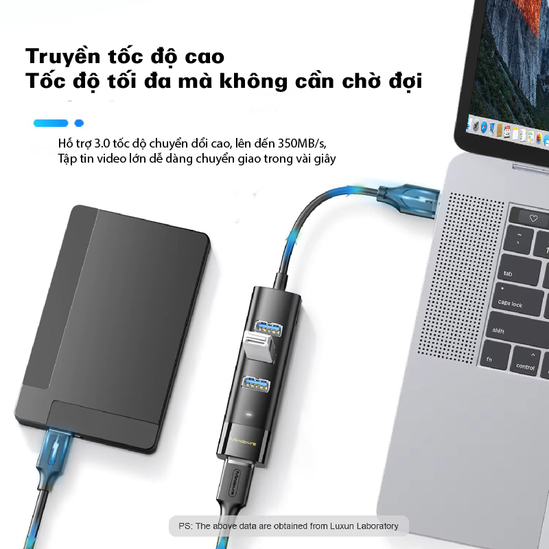 Bộ chia USB Type-C Mindpure US023 hỗ trợ chuẩn USB 3.0 với tốc độ truyền dữ liệu lên đến 350MB/giây, giúp bạn truyền các tệp video lớn chỉ trong vài giây, tiết kiệm thời gian và nâng cao hiệu quả công việc.