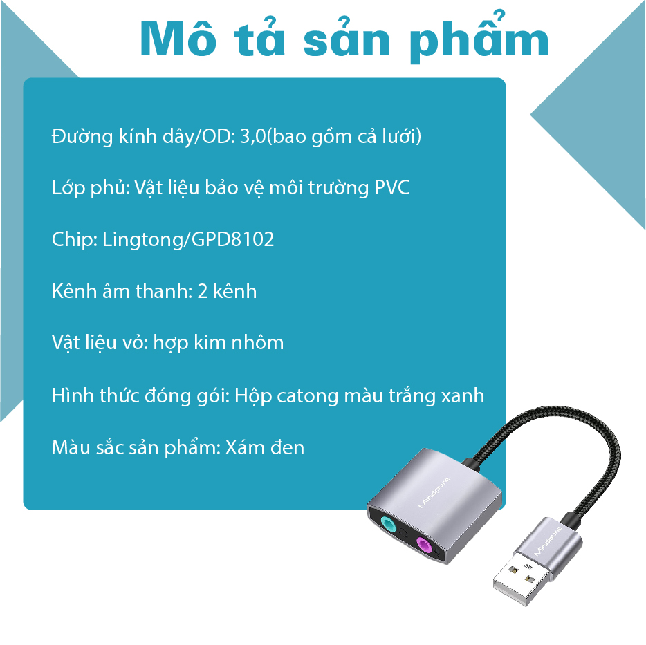Thông số kỹ thuật bộ chuyển đổi USB 2.0 ra cổng âm thanh 3.5 Mindpure US028