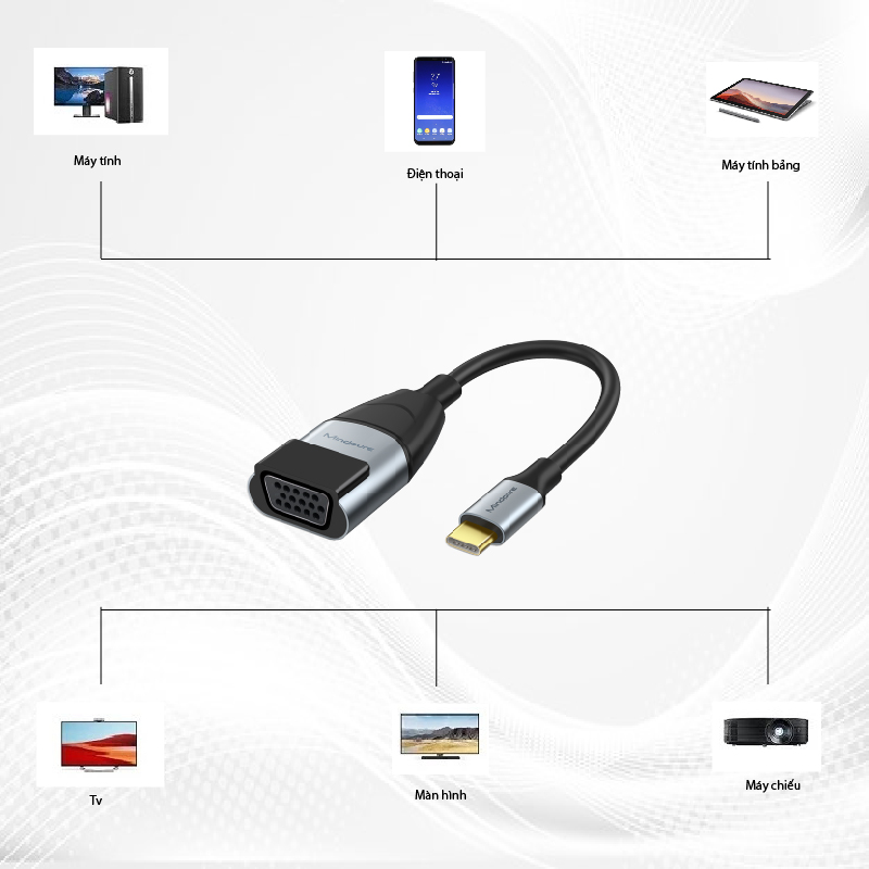 Cáp chuyển đổi Type C to VGA Mindpure HU002 giúp kết nối thiết bị USB-C với màn hình, máy chiếu qua cổng VGA một cách dễ dàng, đảm bảo tín hiệu ổn định, không độ trễ và hình ảnh sắc nét. Với thiết kế nhỏ gọn, tiện lợi, sản phẩm phù hợp cho giảng dạy, hội nghị trực tuyến và giải trí gia đình.
