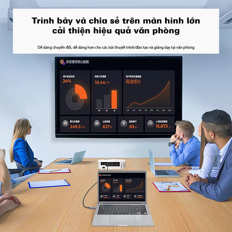 Cáp hỗ trợ linh hoạt hai chế độ hiển thị: phản chiếu (Mirror Mode) và mở rộng (Extend Mode), giúp người dùng dễ dàng chia sẻ màn hình trong các buổi thuyết trình hoặc tăng không gian làm việc khi đa nhiệm. Đây là trợ thủ đắc lực cho giới văn phòng, kỹ thuật, thiết kế hoặc streamer.
