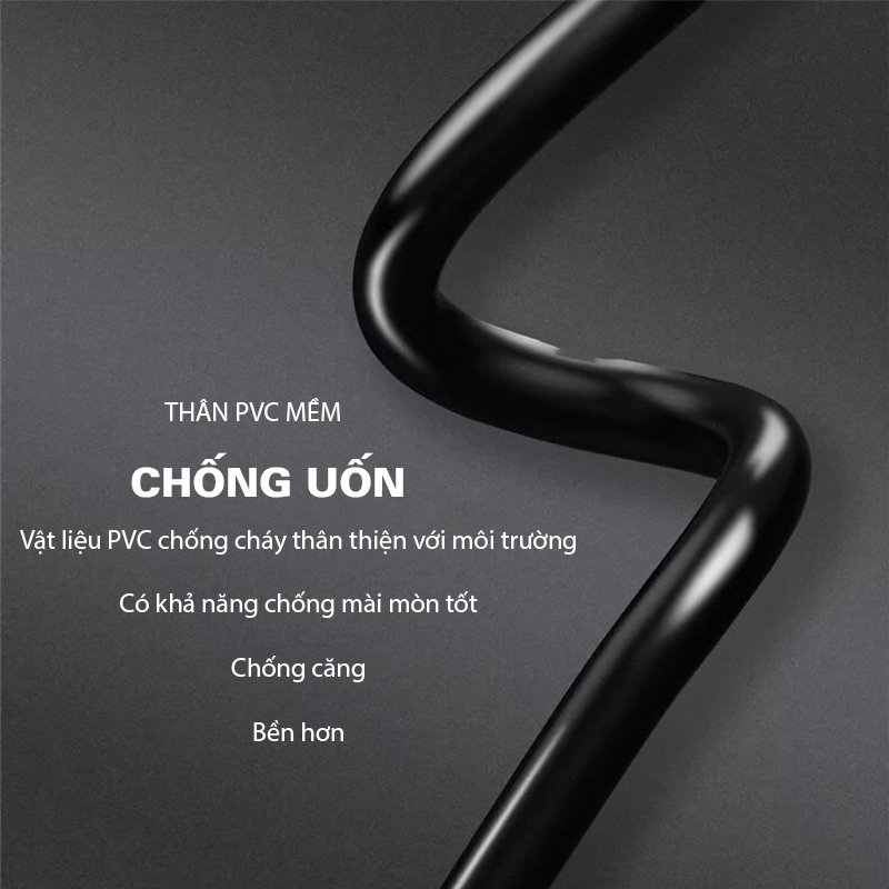 Vỏ bọc bằng nhựa PVC cao cấp đạt tiêu chuẩn bảo vệ môi trường, vừa an toàn cho người sử dụng vừa có khả năng chịu lực tốt, chống đứt gãy và mài mòn. Đường kính dây lên đến 5.2mm, tăng độ chắc chắn và bảo vệ tốt lõi dây bên trong.