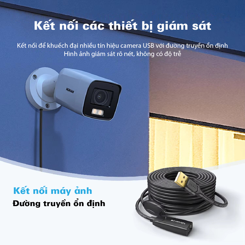 Đối với các phiên bản từ 25 đến 30 mét, Mindpure US010 đi kèm bộ chuyển đổi nguồn 5V2A, giúp cung cấp nguồn điện ổn định cho các thiết bị USB và hỗ trợ hoạt động ổn định của toàn bộ hệ thống khuếch đại. Tính năng này giúp khắc phục tình trạng mất tín hiệu hoặc thiết bị không đủ điện để hoạt động – điều thường xảy ra ở các dòng cáp nối dài thông thường.