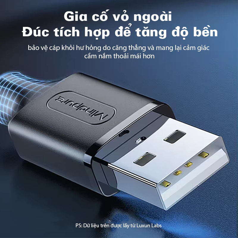 Mindpure US002 được sản xuất với lõi đồng không oxy, giúp tăng cường khả năng truyền tải tín hiệu và giảm thiểu suy hao điện năng. Chất liệu này đảm bảo độ bền cao, hiệu suất ổn định và tuổi thọ dài hơn so với các loại cáp thông thường.