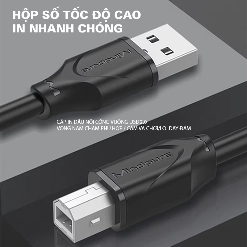 Cáp USB 2.0 AM-BM Mindpure US002 tích hợp vòng từ giúp ổn định tín hiệu