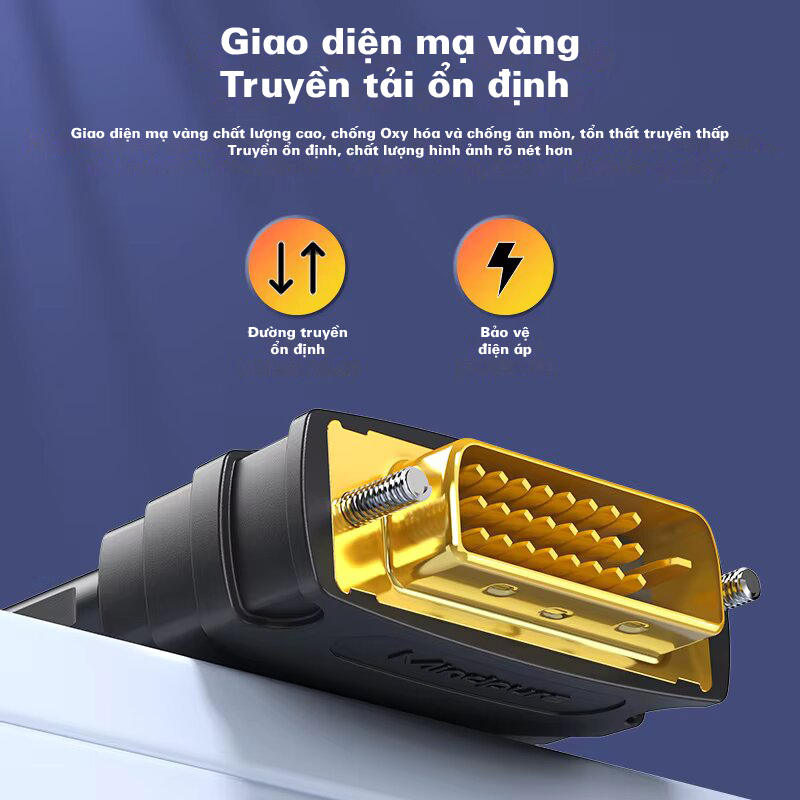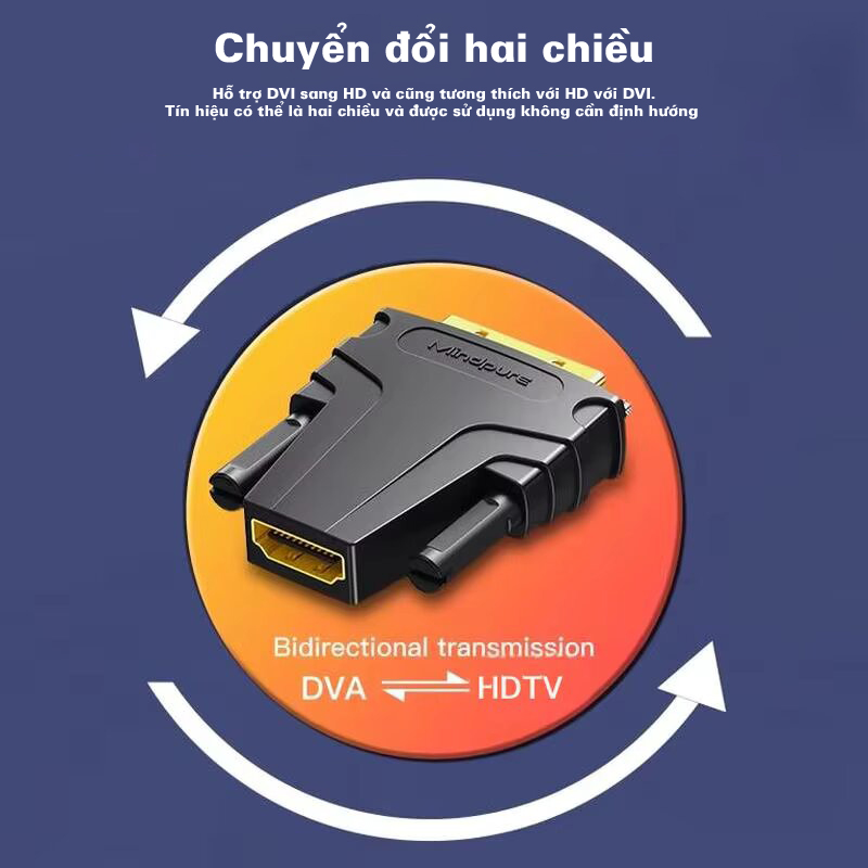 Đầu chuyển DVI 24+1 đực sang HDMI cái Mindpure AD049 được thiết kế để kết nối các thiết bị có cổng DVI với những thiết bị sử dụng HDMI, mang lại sự linh hoạt và tiện lợi trong việc sử dụng các thiết bị công nghệ khác nhau. Với giao diện mạ vàng, sản phẩm đảm bảo truyền tín hiệu hình ảnh và âm thanh ổn định, giúp bạn tận hưởng chất lượng hiển thị tuyệt vời mà không cần thêm thiết bị âm thanh ngoài. Hỗ trợ độ phân giải Full HD 1920x1080P@60Hz, đầu chuyển này sẽ đem đến trải nghiệm hình ảnh sắc nét và mượt mà, đáp ứng nhu cầu giải trí và công việc của bạn.